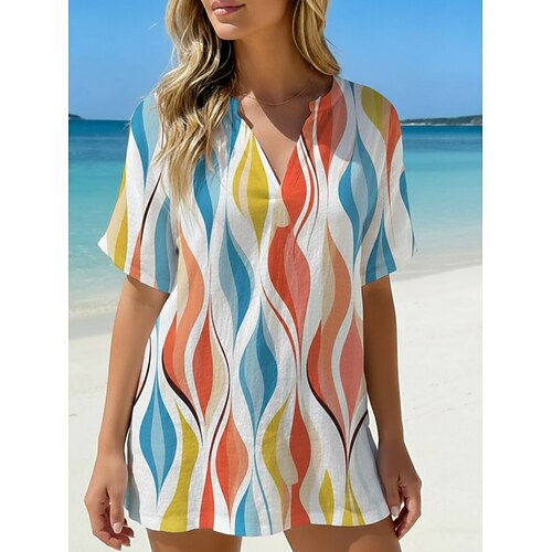 Per donna Camicia Camicia casual Camicia da Spiaggia Blusa Stampato Geometrico Elegante Classico Moderno Manica Corta Scollo a V Top Regolari Quotidiano Ferie Uscire Blu Azzurro cielo Azzurro Estate