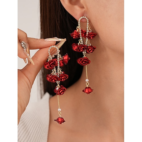 orecchini pendenti a forma di rosa da donna, romantici gioielli floreali con catene d'oro per feste di Natale, regali per le feste abiti da festa