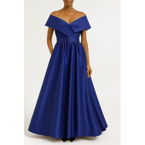 Linea ad A Lunghezza al pavimento Abito da Sera Da principessa Abito formale Elegante Vintage Manica Corta Senza Spalle Matrimonio Formale Nylon con Tasca