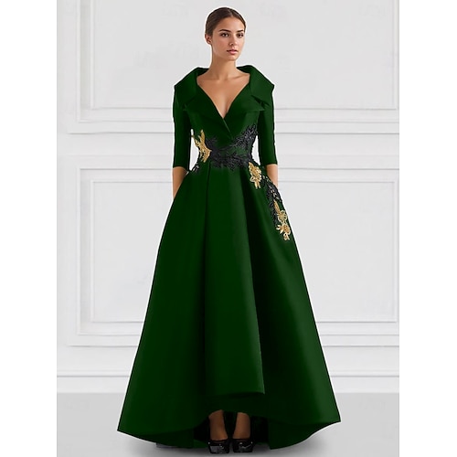 Linea ad A Lunghezza al pavimento Abito da Sera Elegante Manica 3/4 Colletto a Camicia Formale Raso con Applicazioni