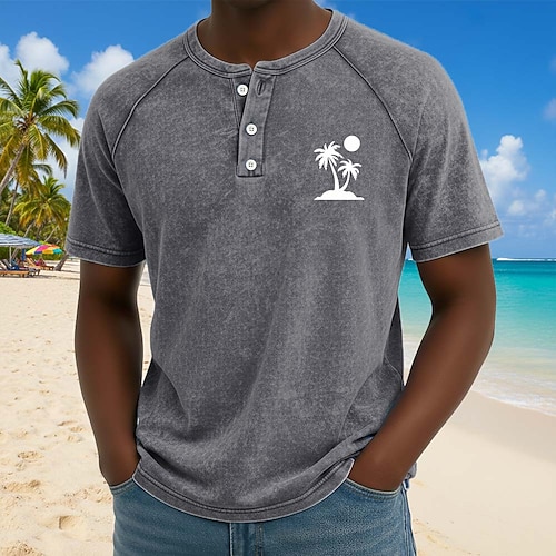 Per uomo Albero di Cocco Vintage Maglietta Top Henley Camicia lavata Manica Corta Vintage Designer Casual Casuale Quotidiano All'aperto Estate Primavera Tutte le stagioni Blu chiaro Viola Grigio