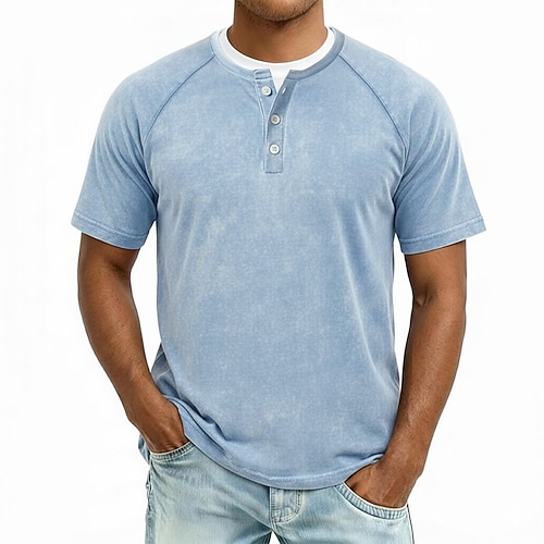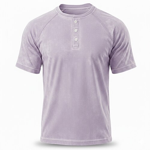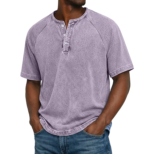 Per uomo Albero di Cocco Lavato Maglietta Top Henley Camicia lavata Manica Corta Vintage Designer Casual Casuale Quotidiano All'aperto Estate Primavera Tutte le stagioni Blu chiaro Viola Grigio Henley