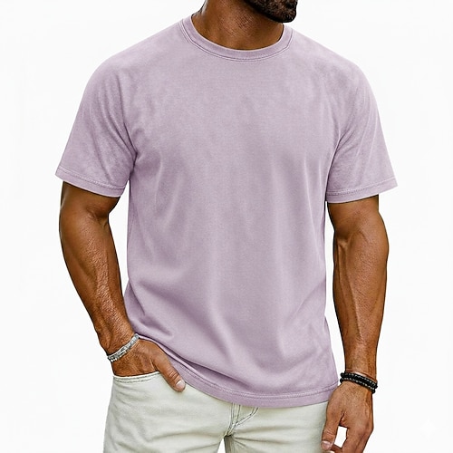 Da uomo Maglietta di cotone Camicia lavata Maglietta Manica Corta Girocollo Estate Primavera Tutte le stagioni Tinta unica Vintage Casual Angosciato Stile Vintage Lavato Casuale Quotidiano Streetwear