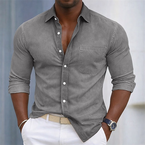Per uomo Camicia Camicia casual Camicia con Bottoni Camicia di cotone Camicia lavata con acido Rosso Viola Verde Albicocca Grigio Manica Lunga Semplice Colletto a Camicia Casuale Quotidiano Tasca