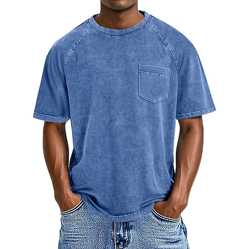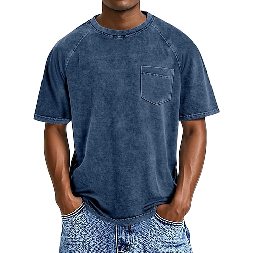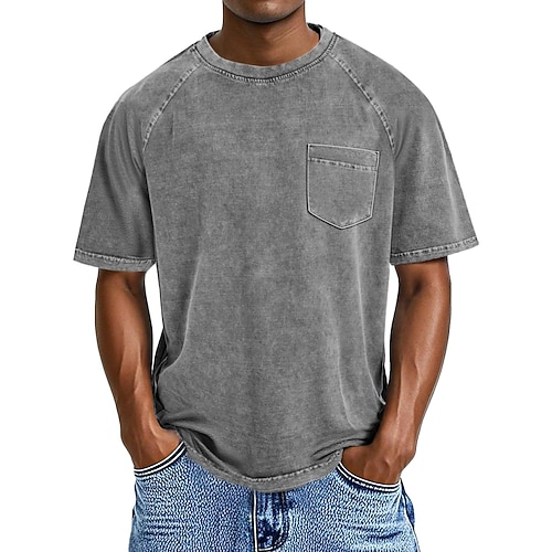 Per uomo Maglietta di cotone Camicia lavata Maglietta Manica Corta Girocollo Estate Primavera Tutte le stagioni Tinta unica Semplice Retrò Vintage Angosciato Tasca Lavato Manica corta Casuale Vacanza