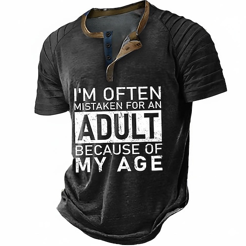 Per uomo Gergo divertente Maglia Henley T-shirt Raglan Manica Corta Moda Designer Casual All'aperto Vacanza Casuale Estate Primavera Primavera Estate Nero Blu Grigio Verde Cachi Colletto Henley