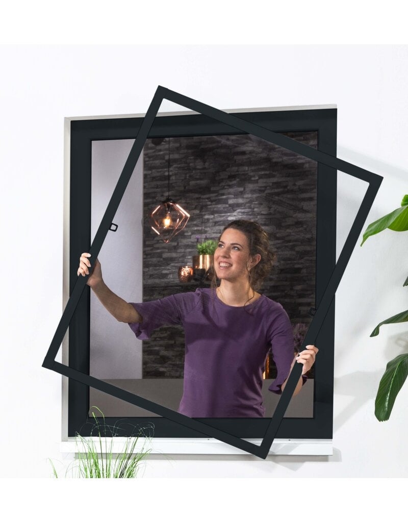 Insektenschutz-Fensterrahmen WINDHAGER, grau (rahmen: anthrazit gewebe: schwarz), B:100cm H:120cm, Insektenschutzgitter, BxH: 100x120 cm