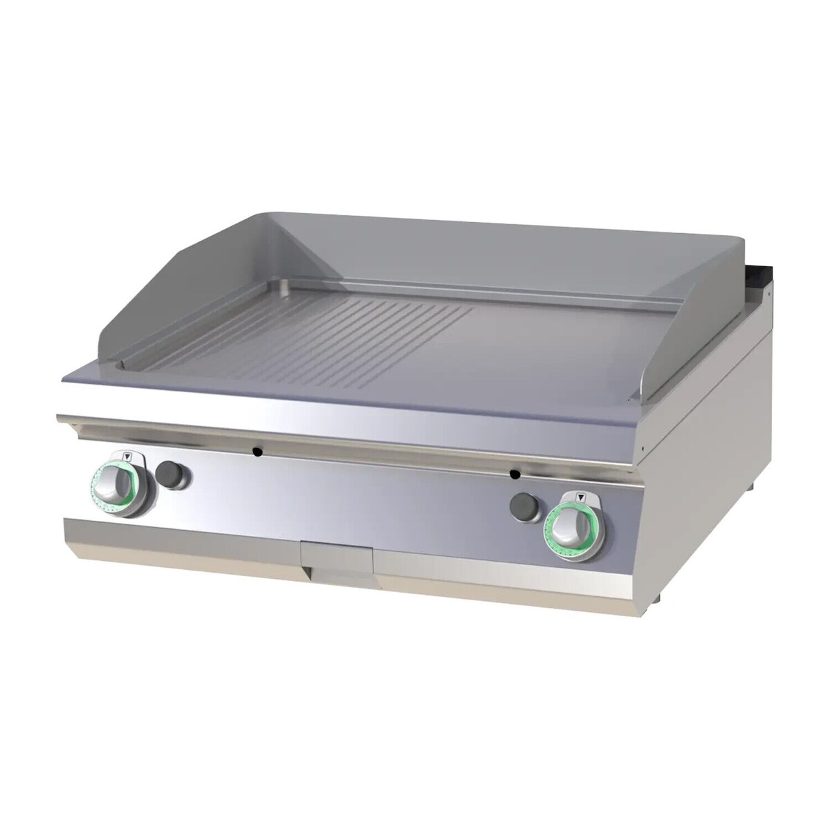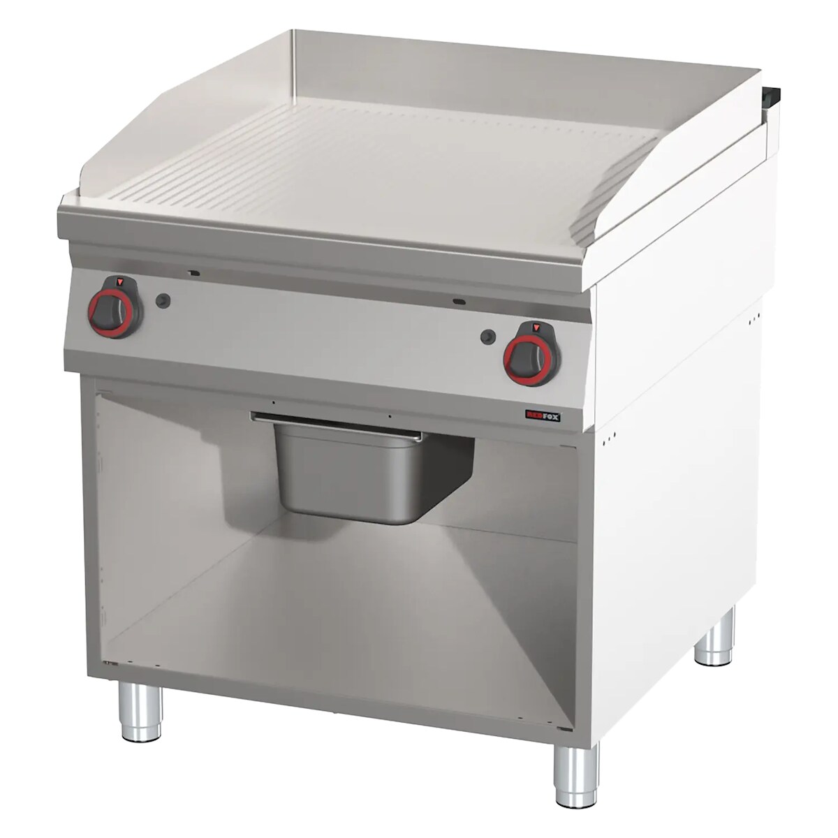 A&S polarny Gastro Elektro-Griddleplatte Standgerät mit Unterbau Grillplatte Bratplatte glatt/gerillt 800x900x900 mm Edelstahl 12 kW