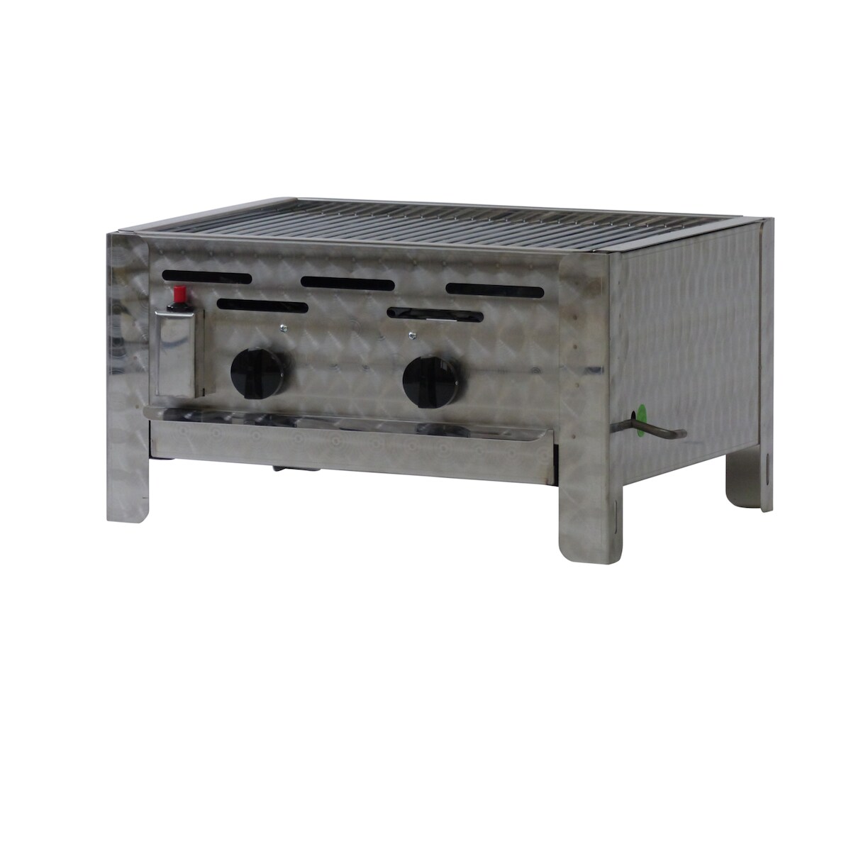 Gastrobräter, 2 Brenner je 3,6 kW, mit Grillrost, B 480 x T 530 x H 270 mm, inkl. Gewerbedruckregler u. Schlauchbruchsicherung