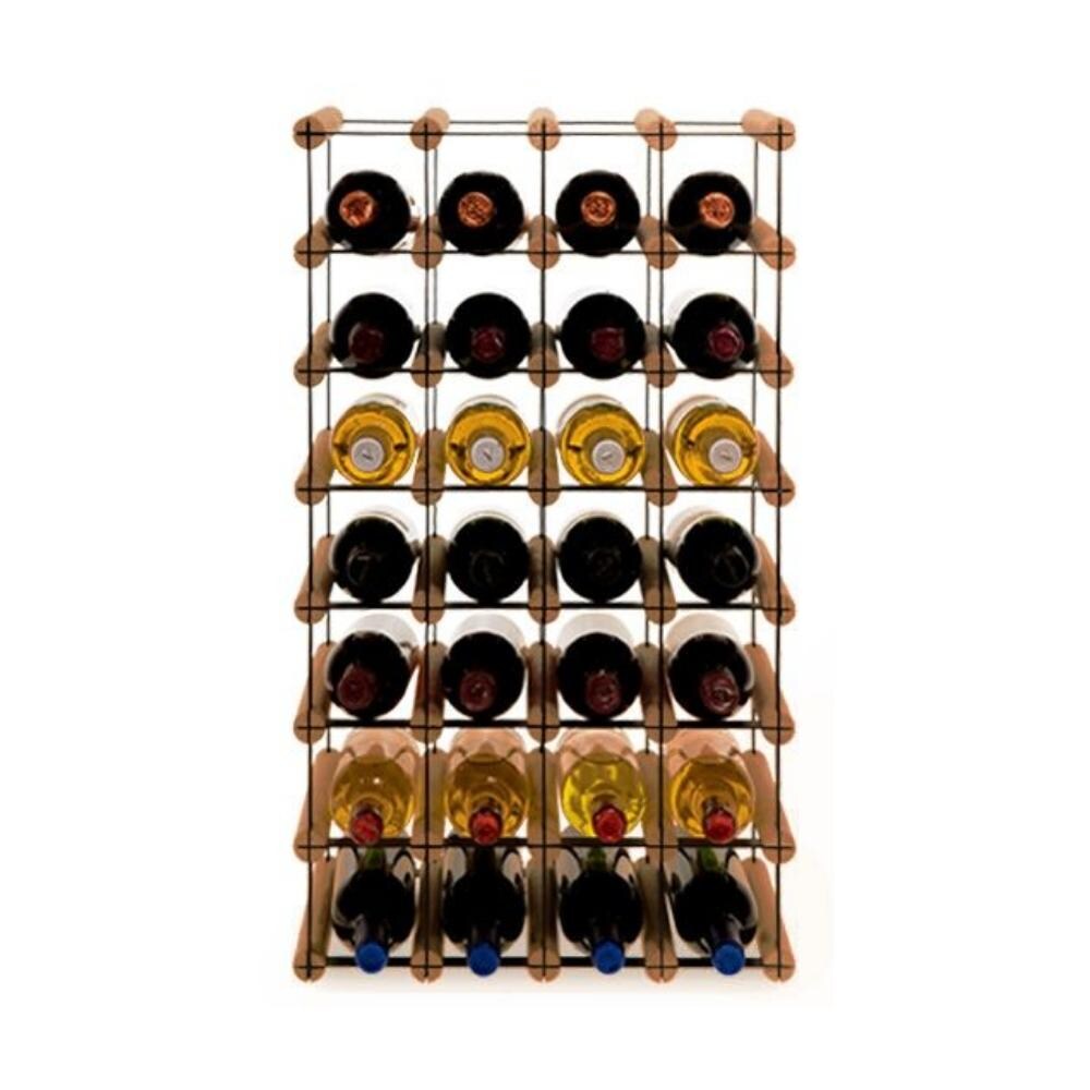 PROREGAL Modulares Weinregal VINOTECA MOD METAL | HxBxT 72,5x42,5x24,5cm | 4x7 Flaschen | Massives Kiefernholz | Braun geölt | Flaschenregal