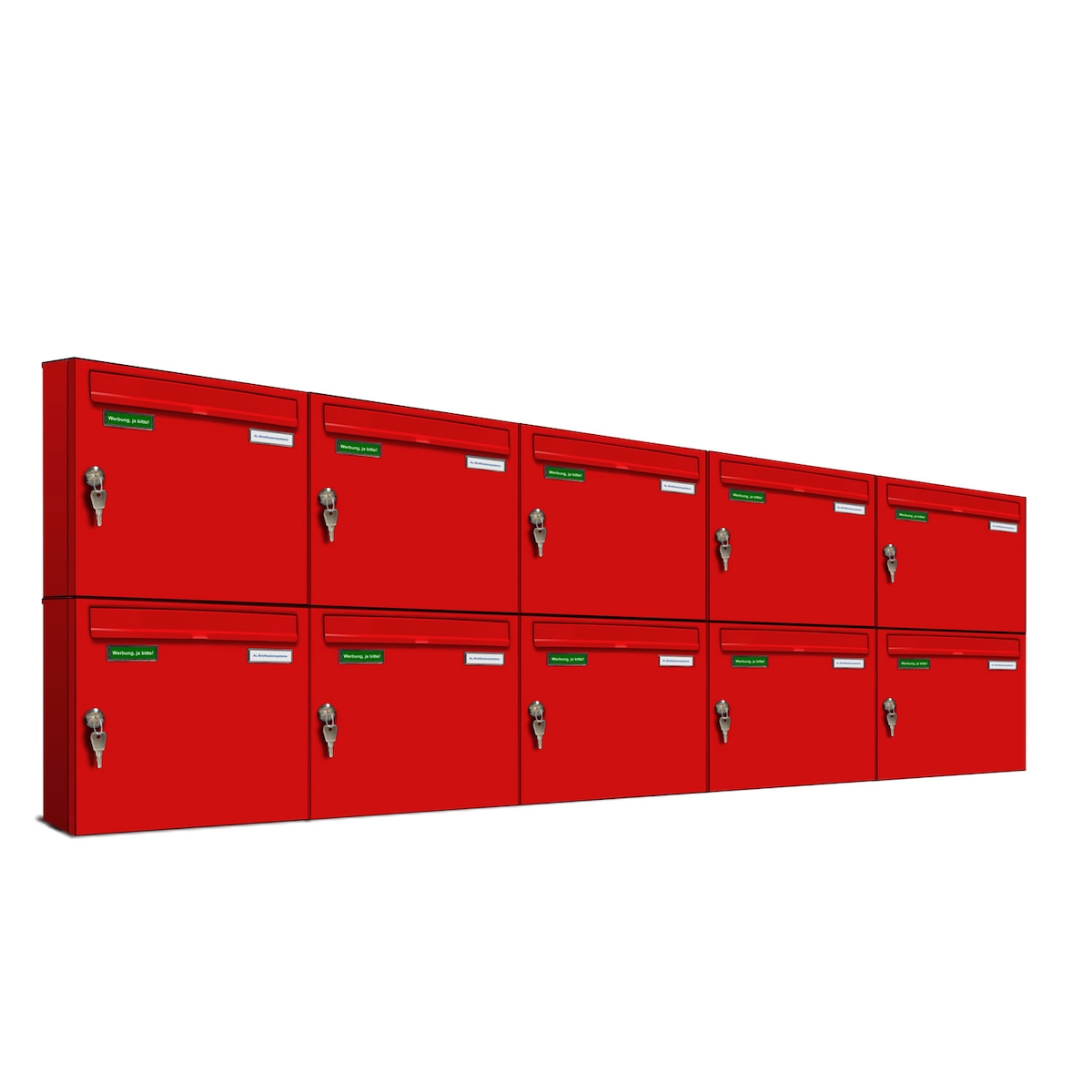 AL Briefkastensysteme 10 x Basic Wand Briefkasten in RAL Farbe 3000 Feuer Rot für Post A4, wetterfest, Artikelnummer: 431P10EA5P3000