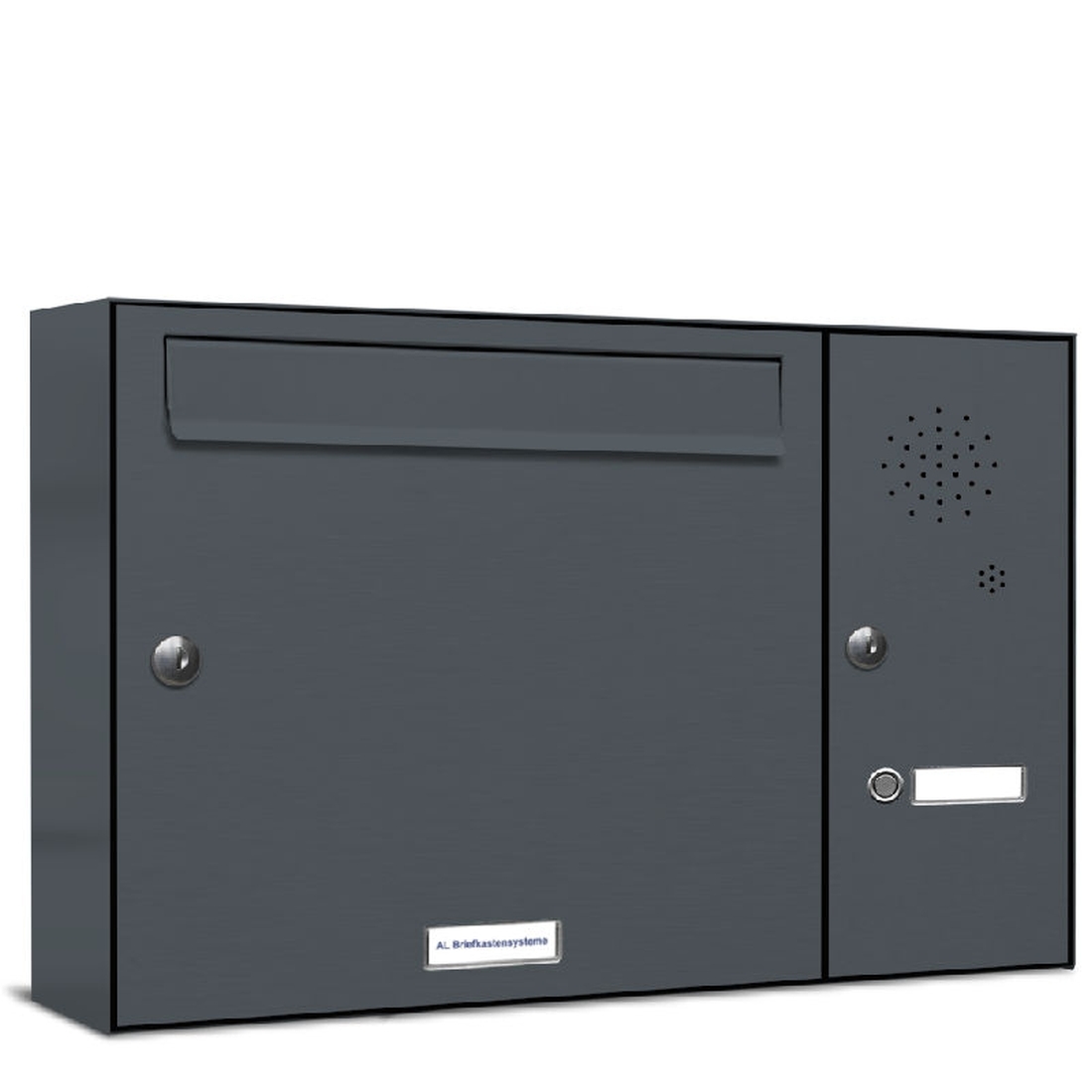 AL Briefkastensysteme 1 Fach Premium Wand Briefkasten mit Klingel A4, RAL 7016 Anthrazit Grau, robust, wetterfest, Artikelnummer: 331P1EA1KSRP7016