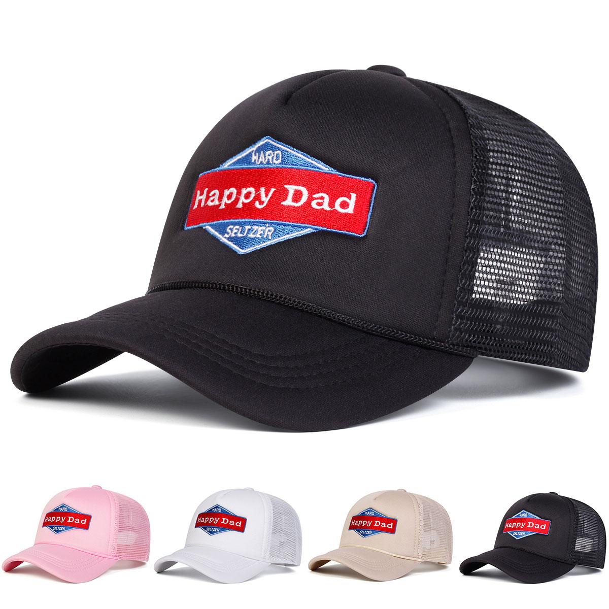 Men Happy Dad Letter Embroidered Baseball Cap Mesh Hat Outdoor Adjustable Sunscreen Leisure Hat Spring Autumn Travel Tourism Beach Vacation black