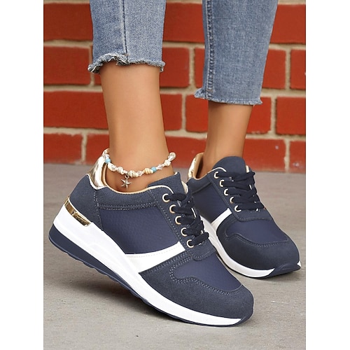 Sneakers da donna con zeppa, lacci e dettagli dorati, color verde militare: scarpe casual da passeggio per uno stile sportivo da strada