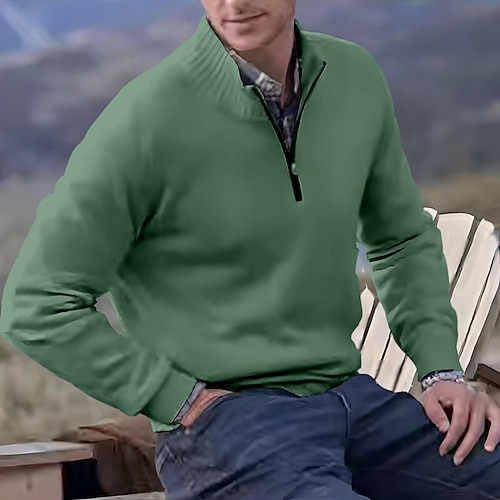Per uomo Felpa Maglione Maglione con zip a un quarto A Coste Maglia Top Regolari Lavorato a maglia Slim Fit Semplice Colletto Mao Maglieria Contemporaneo Casuale Abbigliamento quotidiano Abbigliamento