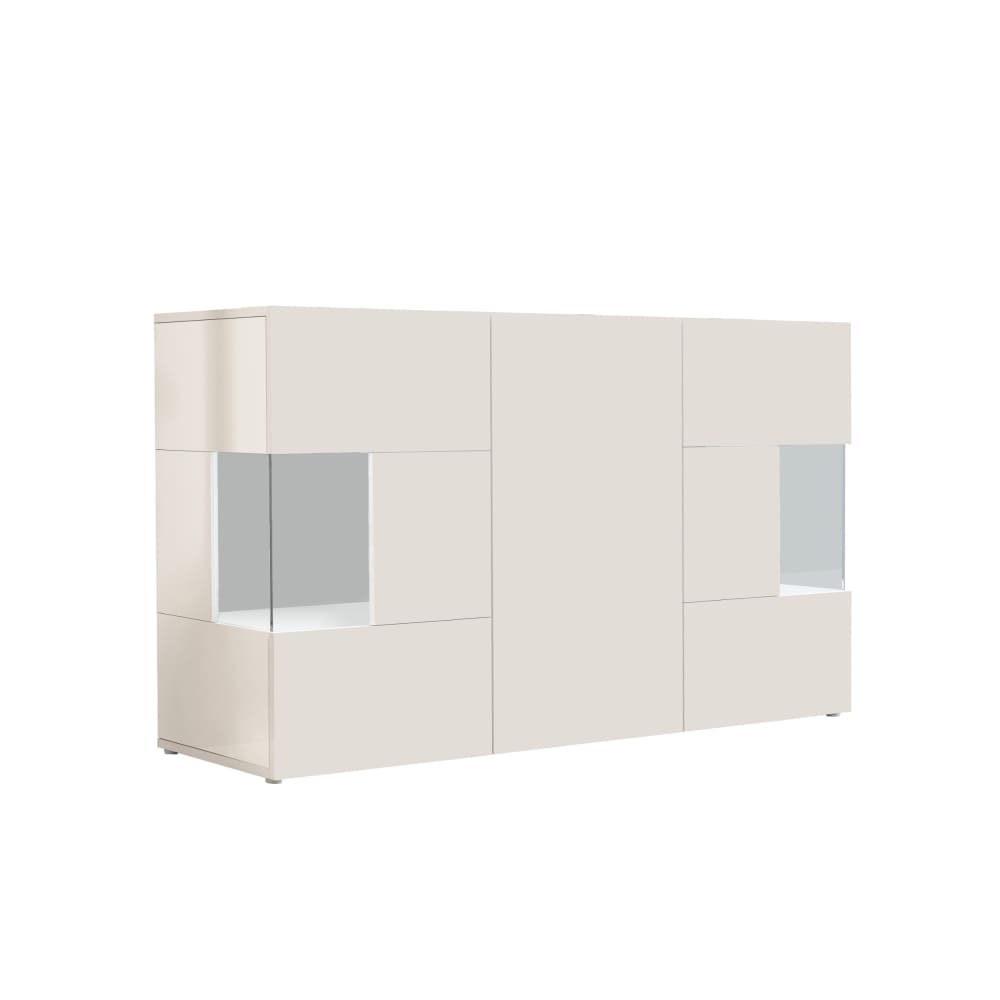Credenza in legno, finitura bianco, ante finitura acciaio 180x50 cm
