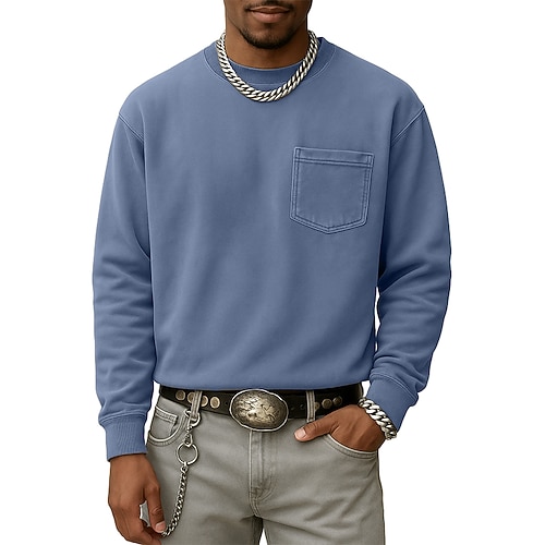 Per uomo Maglia Maglione Blu Rosso bordeaux Giallo Verde militare Blu marino Girocollo Semplice Patchwork Tasca Sport Outdoor Casuale Quotidiano Vintage Streetwear Abbigliamento Sportivo Primavera