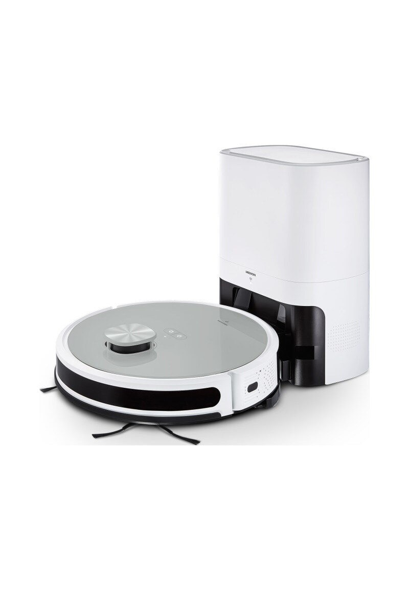 MEDION Saugroboter "X50 SW (MD20004)", weiß, B:35,5cm H:8,5cm T:35,5cm, Saugroboter, mit Absaugstation, starke 8.000 Pa Saugkraft, No Go & Go Bereiche