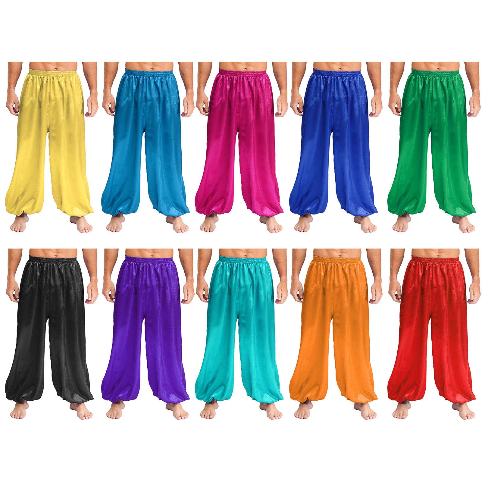 Satin Bloomers for Men Loose Belly Dance Pants Elastic Waist Comfortable Stage Costume S-XXL cm royal blue