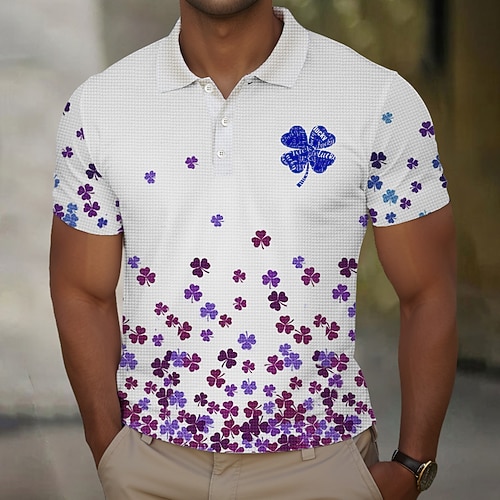 Per uomo Per maschio Floreale Polo Maglione polo lavorato a maglia Manica Corta Collo ripiegato Colletto Polo Moderno Formale Lavoro Sport Outdoor Bottoni Stampa Primavera Rosso rubino Bianco Blu