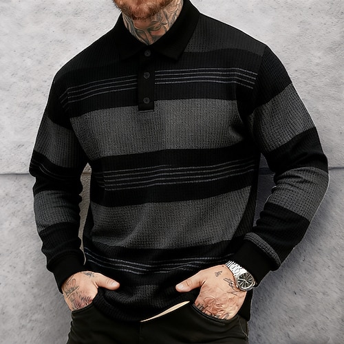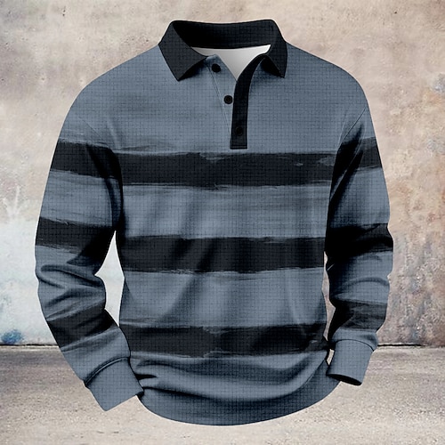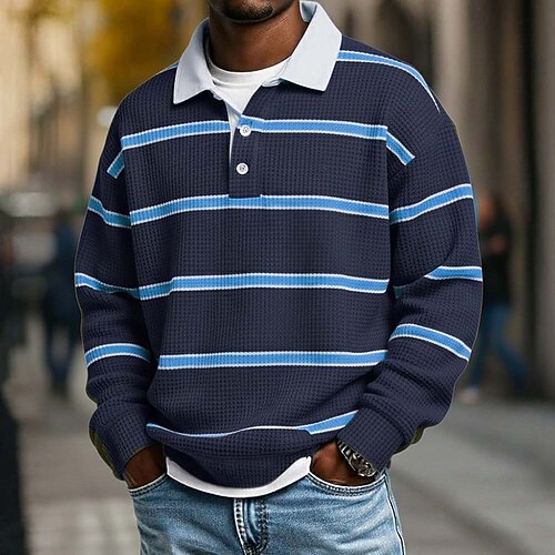 Per uomo Strisce orizzontali Magliette Polo a Nido d'Ape Polo da rugby Testurizzato Manica Lunga Magliette polo Bavero Abbigliamento Sportivo Casual Scuola Athleisure Abbigliamento quotidiano Stampa