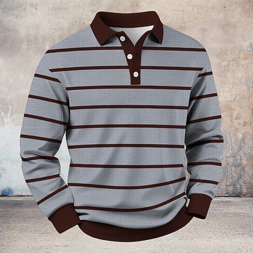 Per uomo A righe Polo da rugby Polo da Golf Manica Lunga Magliette polo Collo ripiegato Casual All'aperto Casual Quotidiano Abbigliamento casual alla moda 3D Stampato Autunno Inverno Giallo Marrone