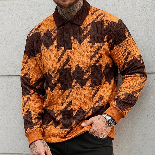 Per uomo Polo con bottoni POLO Informale Sport Bavero Manica lunga Di tendenza Essenziale A quadri Color Block Pulsante Primavera Autunno Standard Nero Rosso Blu Marrone Polo con bottoni