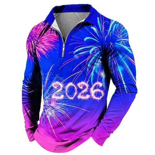 Per uomo Stampa Lettere Polo con zip Maglia da golf Manica Lunga Magliette polo Camicie con Colletto Vintage Casual All'aperto Streetwear Abbigliamento Quotidiano Stampa 3D Polo con cerniera a un