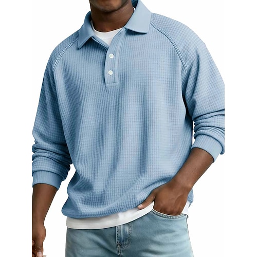 Per uomo Polo a nido d'ape Polo con bottoni Informale Sport Bavero Manica lunga Di tendenza Essenziale Liscio Pulsante Primavera Autunno Standard Verde militare Arancione Cachi Grigio chiaro Polo a