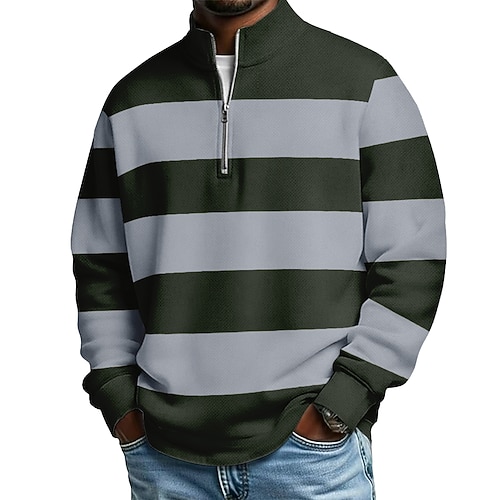 Per uomo Strisce orizzontali Polo con zip Manica Lunga Magliette polo Colletto alla coreana Casual Scuola Athleisure Ferie Abbigliamento quotidiano Stampa 3D Polo con cerniera a un quarto Primavera