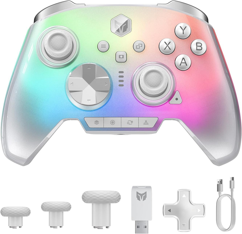 BIGBIG WON Rainbow 3 kabelloser Controller, 2000 Hz Abtastfrequenz, kapazitiver Joystick, 16 mechanische Tasten, 14 individuell anpassbare RGB-LEDs, 6-Achsen-Gyrosensor, umschaltbare Hall-/Mikro-Switch-Trigger, 3,5 mm Audio-Klinke, Gamepad für PC/Switch2/iOS/Android