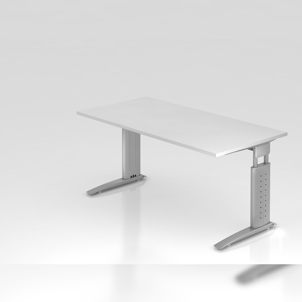 PROREGAL Schreibtisch Mauri | Weiß | Silber Gestell | BxT 160x80cm | Arbeitshöhe 68-86cm | höhenjustierbar, 2cm Raster | C-Fuß-Gestell | Bürotisch