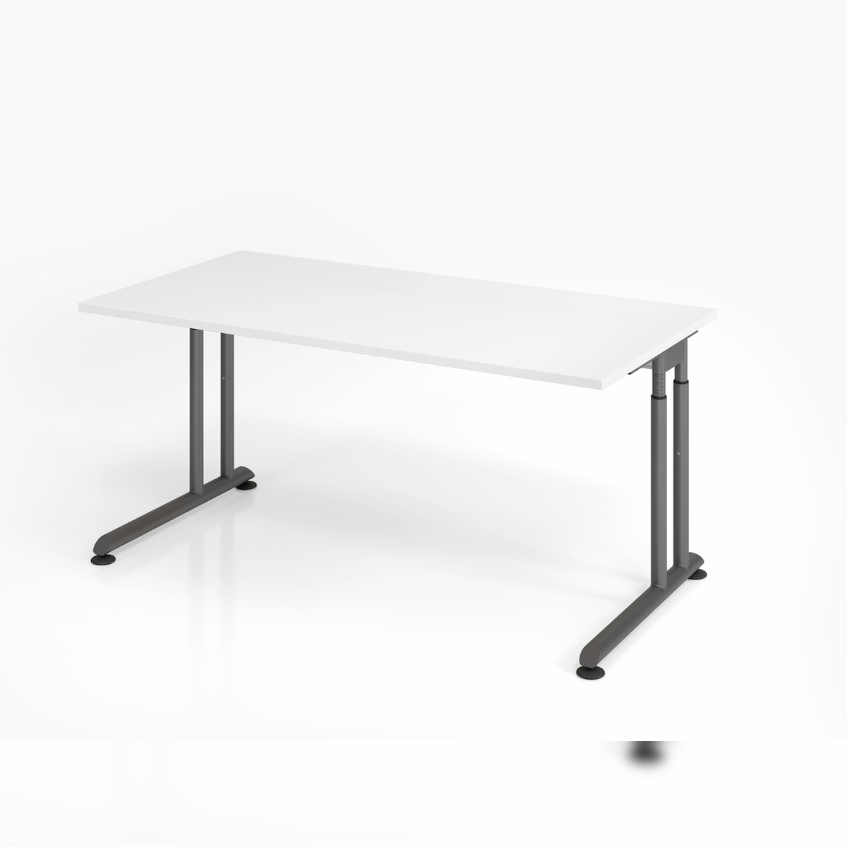 PROREGAL Schreibtisch Nilo | Weiß | Graues Gestell | BxT 160x80cm | Arbeitshöhe 68-82cm | höhenjustierbar, 1cm Raster | C-Fuß-Gestell | Bürotisch