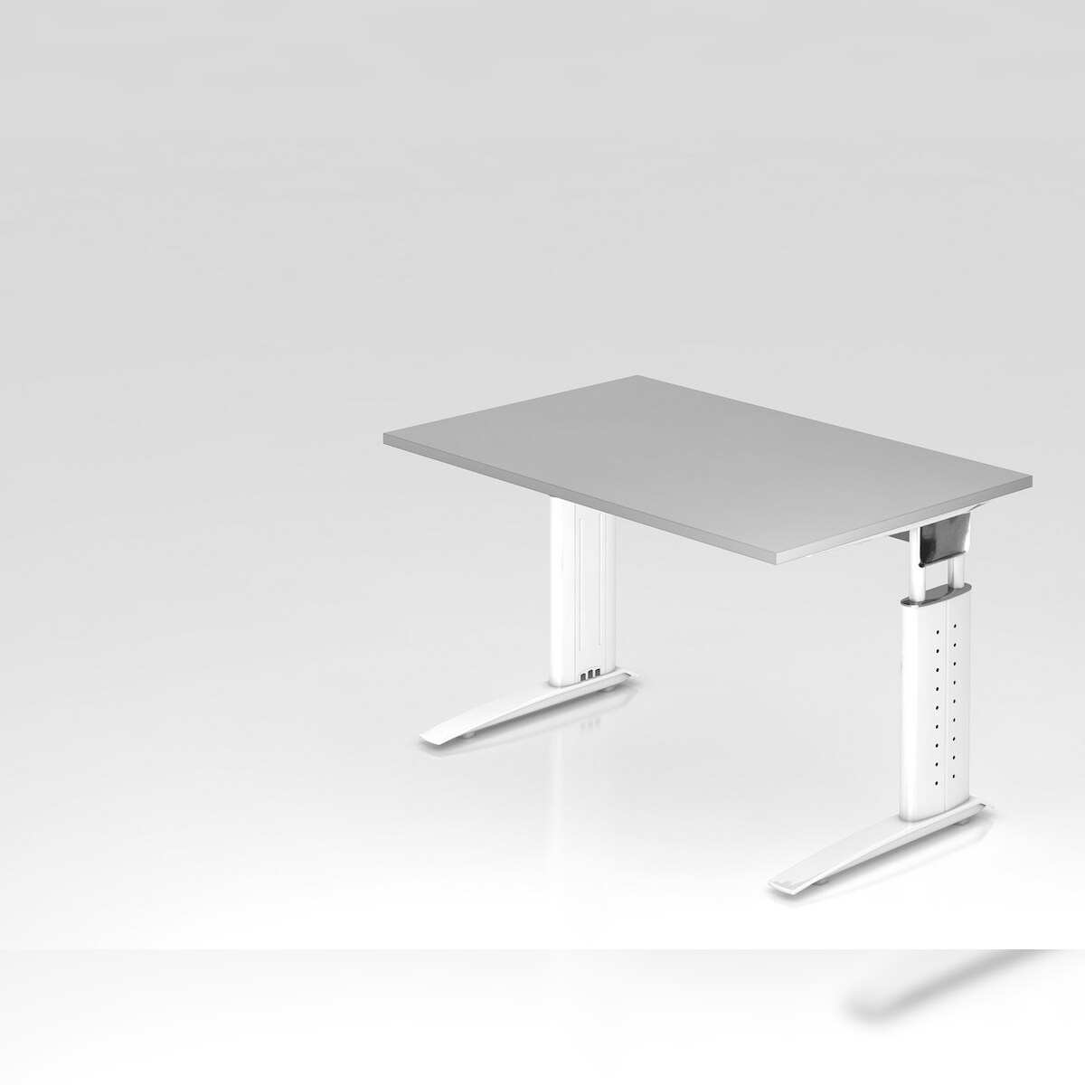PROREGAL Schreibtisch Mauri | Grau | Weißes Gestell | BxT 120x80cm | Arbeitshöhe 68-86cm | höhenjustierbar, 2cm Raster | C-Fuß-Gestell | Bürotisch