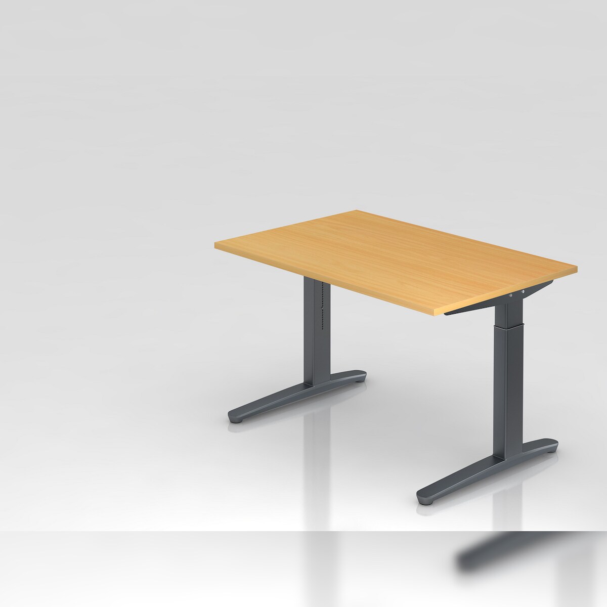 PROREGAL Schreibtisch Mika | Ahorn | Graues Gestell poliert | BxT 120x80cm | Arbeitshöhe 65-85cm | höhenjustierbar, 1cm Raster | C-Fuß-Gestell