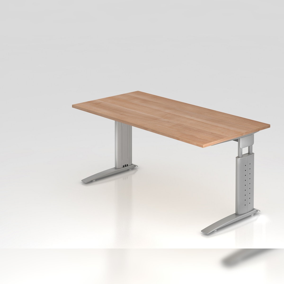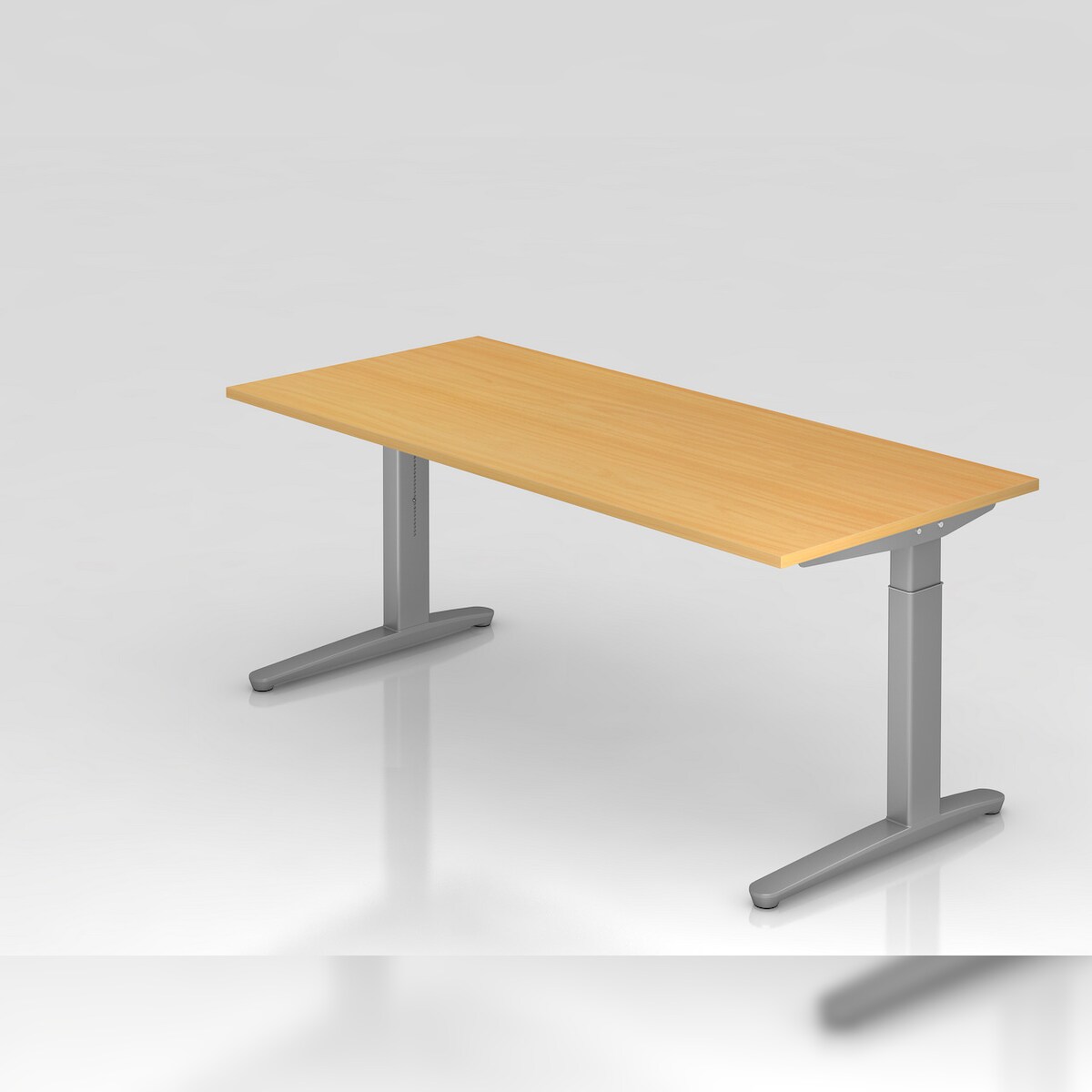 PROREGAL Schreibtisch Mika | Buche | Silber Gestell | BxT 180x80cm | Arbeitshöhe 65-85cm | höhenjustierbar, 1cm Raster | C-Fuß-Gestell | Bürotisch