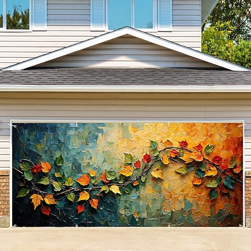 arazzo Copertura per porta del garage Grande appeso Foglia Vite Colorato Arte Da serata All'aperto Sfondi di ripresa Porta d'ingresso Decorazioni Parete Porta Sfondo