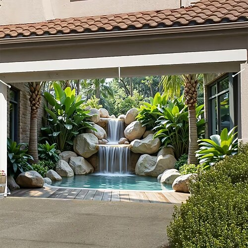 arazzo Copertura per porta del garage Grande appeso Cascata 森林 3D Da serata All'aperto Sfondi di ripresa Porta d'ingresso Arredamento per la casa