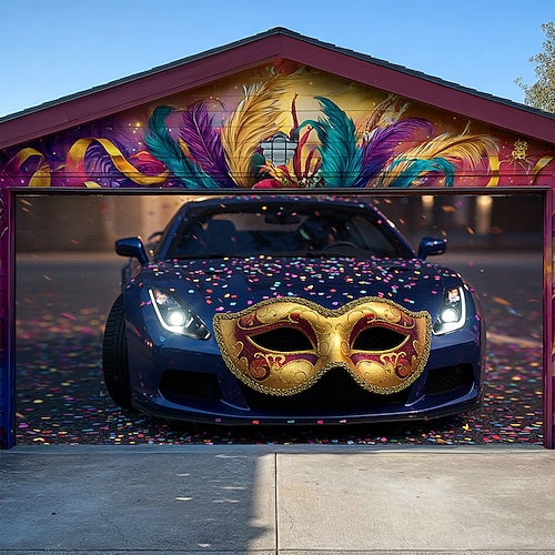 Martedì grasso Copertura per porta del garage Grande appeso Auto Maschera Piume Lusso Moderno 3D Da serata All'aperto Sfondi di ripresa Porta d'ingresso Stile Carnevale di Venezia Arredamento per la