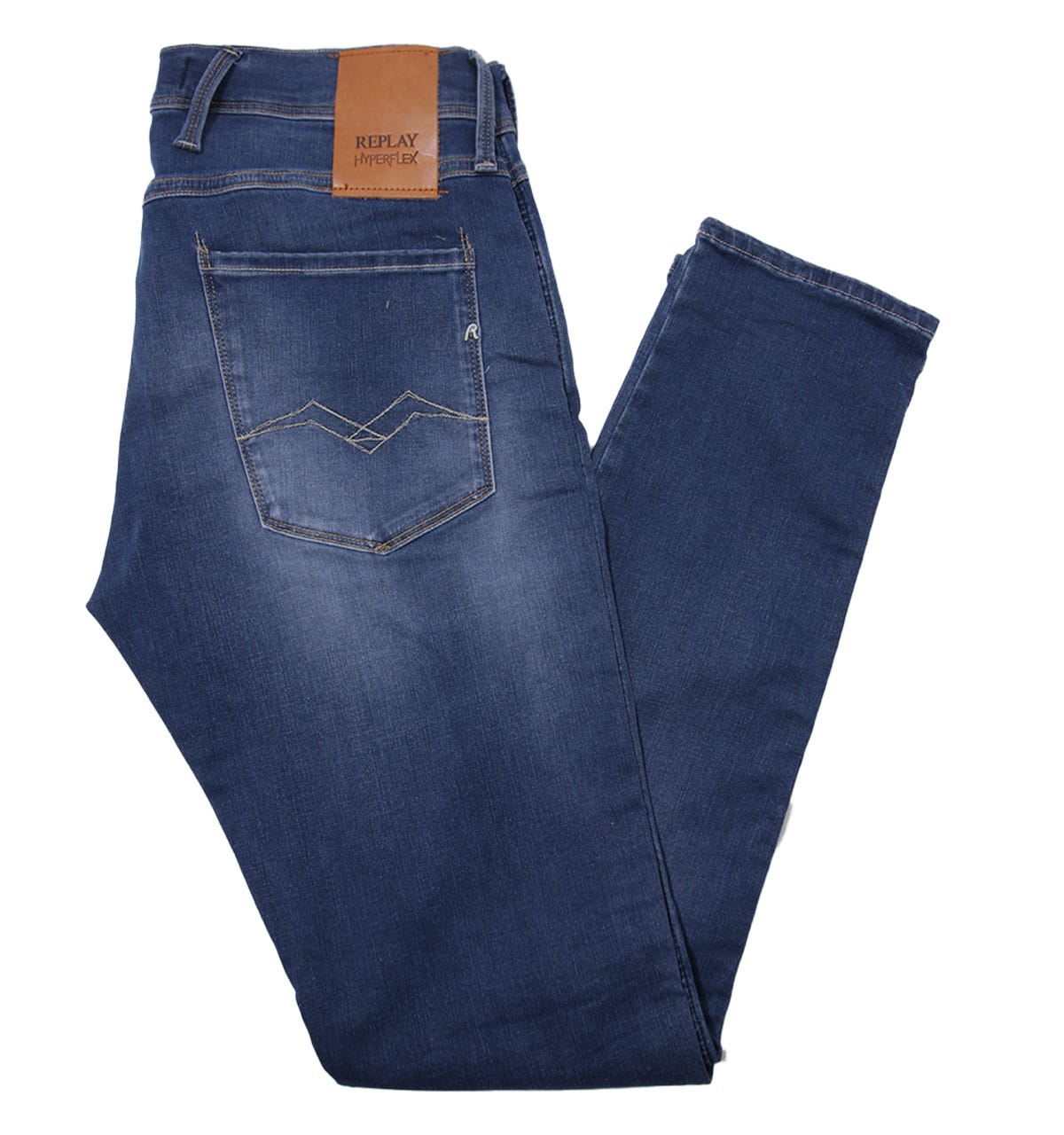 Replay Mens Anbass Hyperflex Re-used X-lite Slim Fit Jeans - Mid Blue Cotton - Size 38W/32L | Replay Sale | Discount Designer Brands