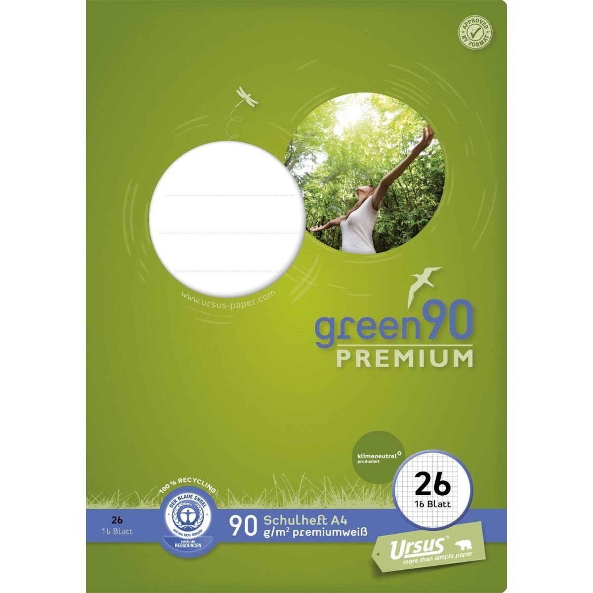 Heft - LIN26, A4, 16 Blatt, 90 g/qm, 5 mm kariert mit Rand