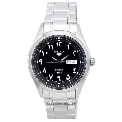 Refurbished Seiko 5 Edelstahl Schwarz Arabisches Zifferblatt Automatik SNKP21 SNKP21J1 SNKP21J Herrenuhr schwarz