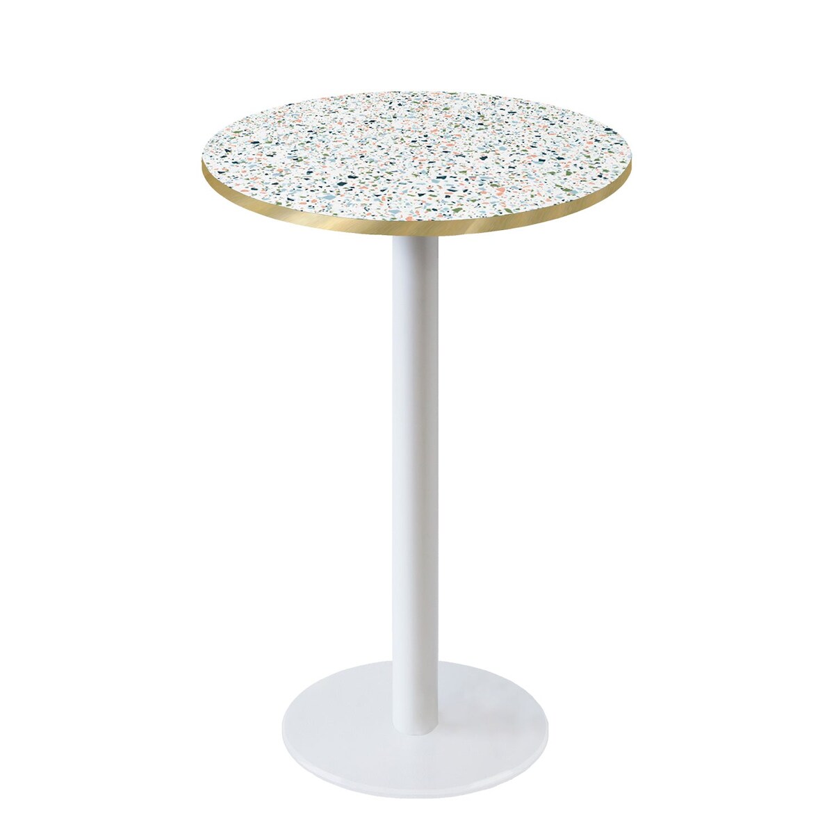 RestooTab - Stehtisch Rome weiß Ø60 Dekor Terrazzo spectra chip Kanten messingfarben