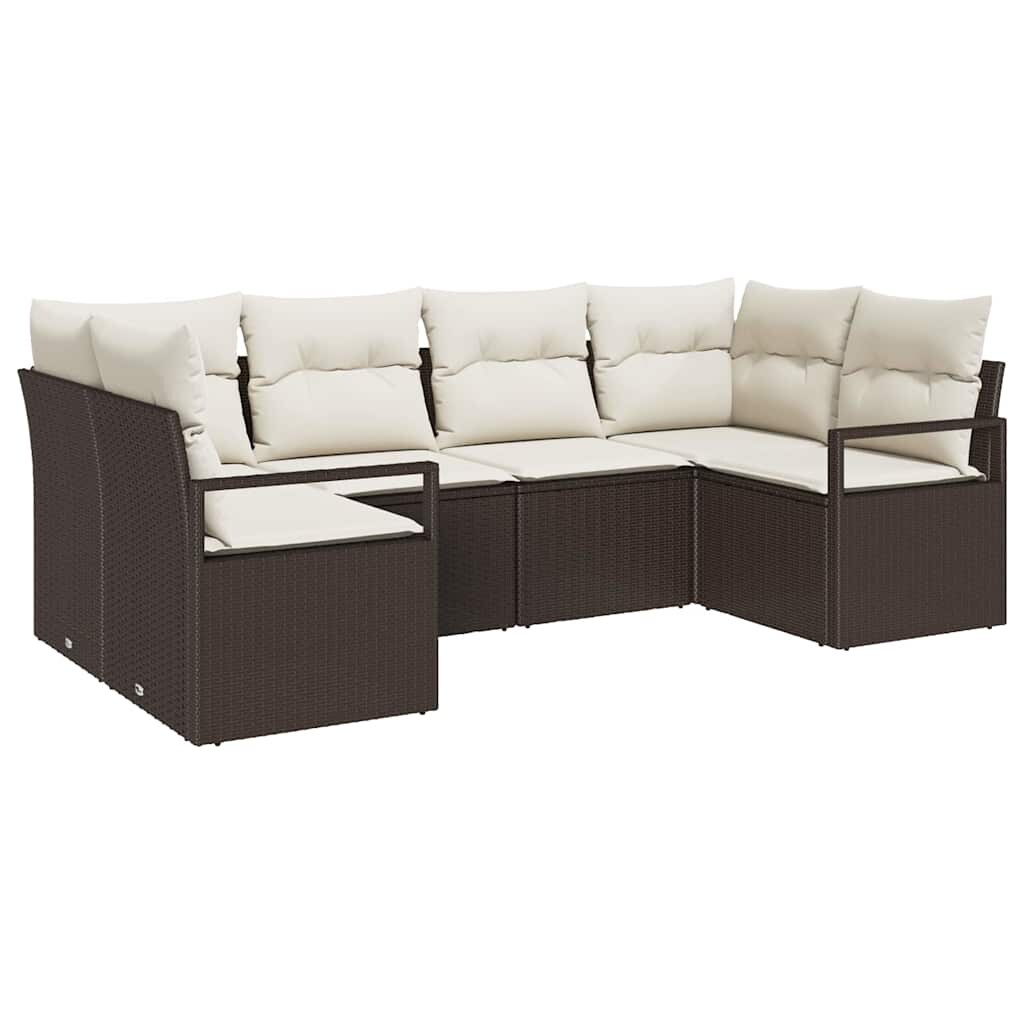 vidaXL Garten-Sofa-Set 6 pcs Braun und Creme Poly-Rattan