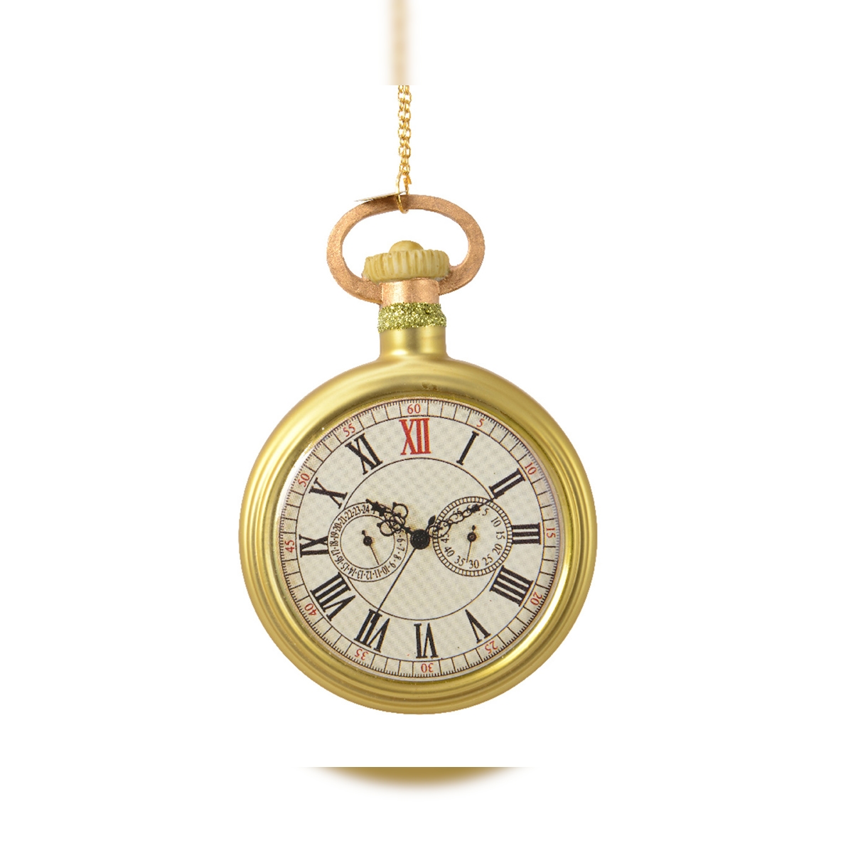 Taschenuhr Glas 11cm Christbaumschmuck Weihnachtskugeln Vintage Uhr gold