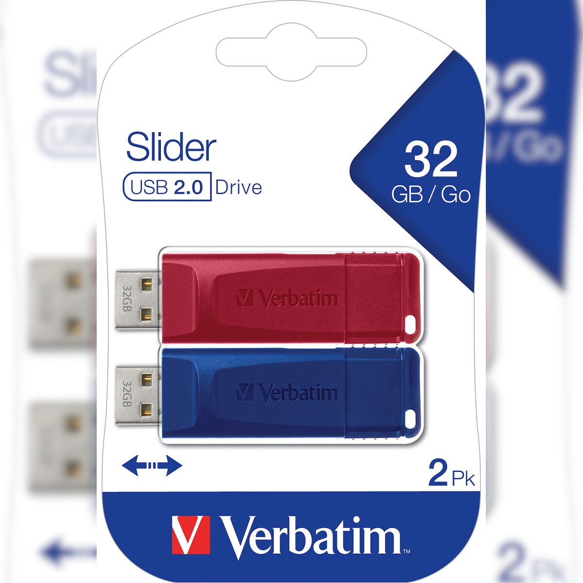 Verbatim USB 2.0 Stick 32GB, Slider, rot-blau, Multipack (R) 10MB/s, (W) 4MB/s, Retail-Blister (2-Pack)