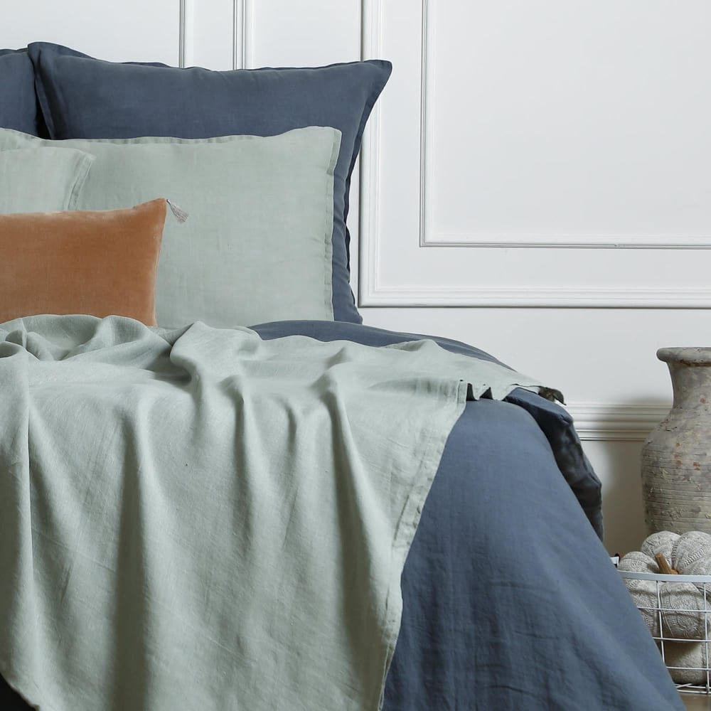 Copriletto lino verde celadon 180x250 cm