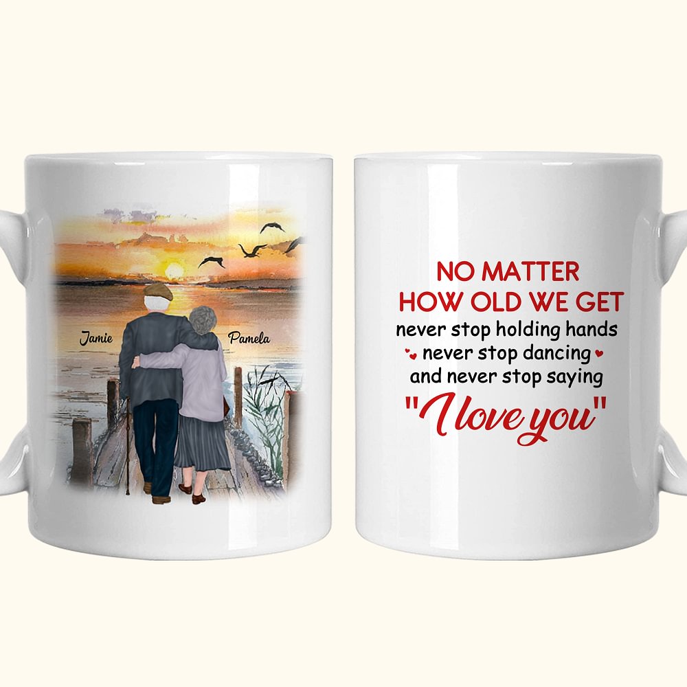 Personalisierte Egal wie alt wir werden Keramik C-Typ Handle Mug Jahrestag Souvenir Geschenk Geburtstag Geschenk für Paar