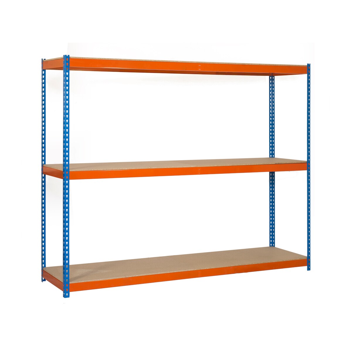 PROREGAL Schwerlastregal WOOD BEAST THREE | HxBxT 150x120x60cm | 3 Ebenen | Fachlast 600kg | Blau-Orange | Weitspannregal Werkstattregal Lagerregal