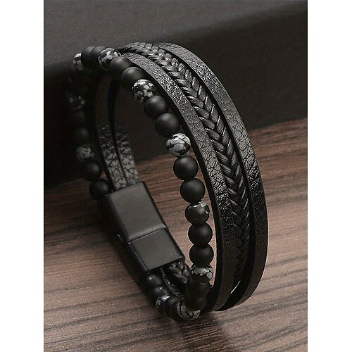 Set di braccialetti da uomo in lega e similpelle con perline, cinturino intrecciato multistrato con chiusura magnetica, gioielli punk alla moda per casual, feste e regali